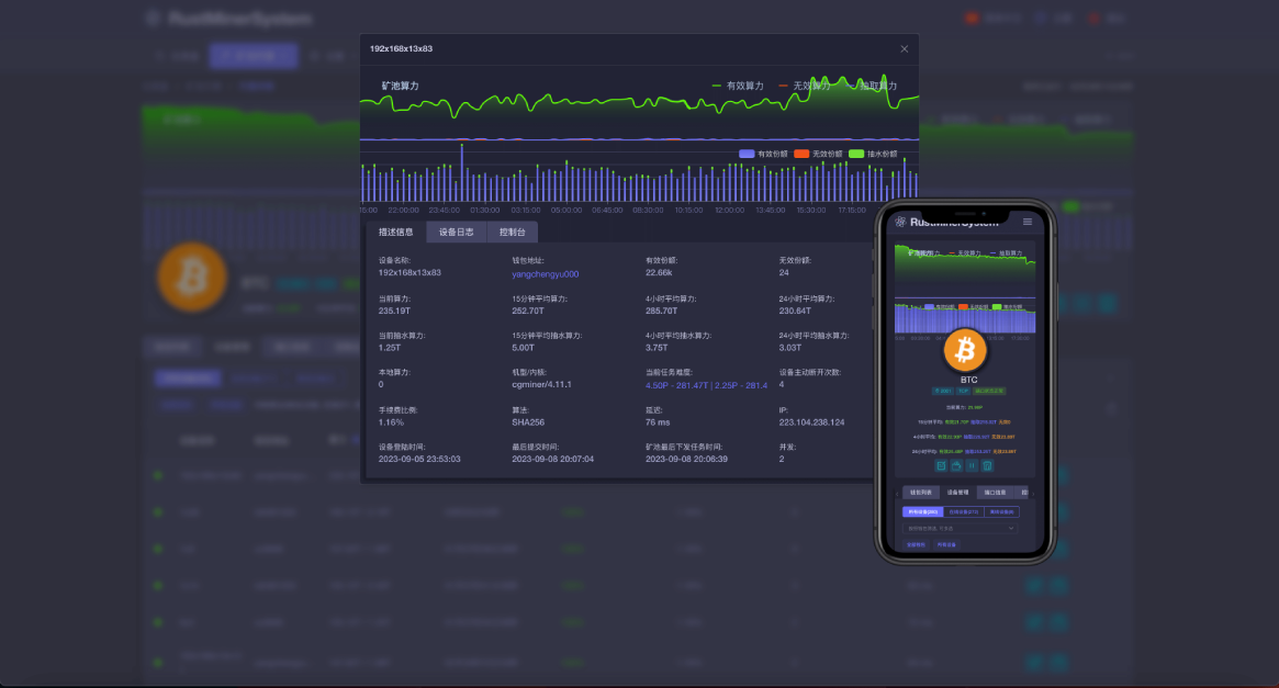 管理后台界面大方、操作简单、功能齐全、矿场运维方便查看各种信息。